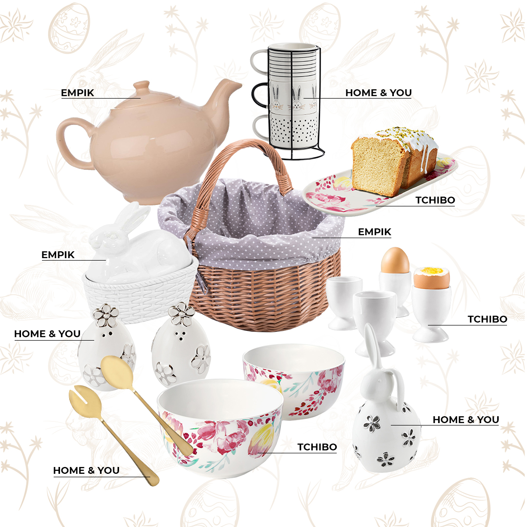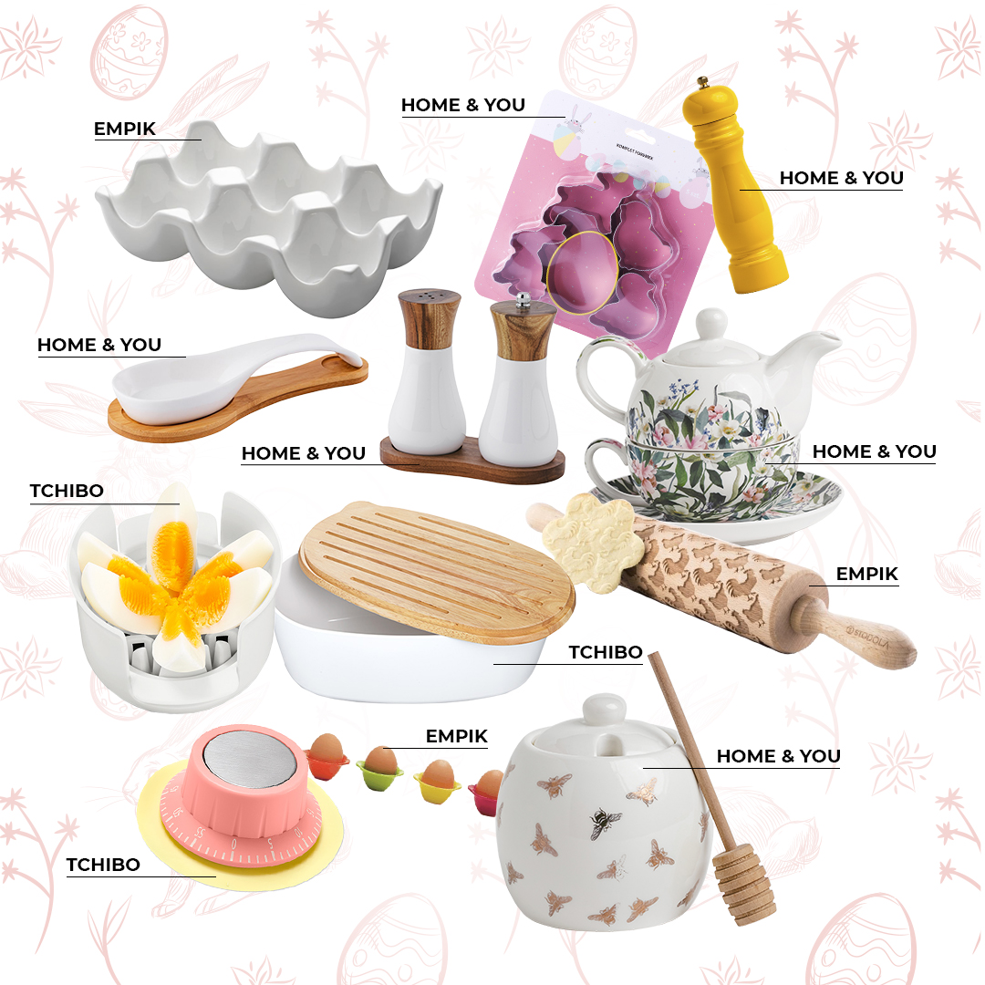 Wybierając świąteczny look nie bój się kontrastowych połączeń: delikatna pastelowa koszula i eleganckie spodnie świetnie zagrają ze sportowymi butami i złotą biżuterią. Panowie zamiast klasycznej marynarki mogą założyć ramoneskę, a skórzane buty zamienić na sneakersy. Eksperymentów nie obawiaj się także w urządzaniu domu. Wielkanocne inspiracje do gotowania zaczerpnij od najlepszych kulinarnych youtuberów, ale nie zapomnij o niezbędnych akcesoriach. Kolorowe talerze, osłonki na doniczki, foremki na babę drożdżową – sprawią, że chwile spędzone w kuchni będą przyjemniejsze. Stół udekoruj świeżymi baziami, dodaj pisanki, wiklinowy koszyk i naturalne materiały. Jeśli tym razem masz ochotę na metamorfozę i marzy Ci się inna niż żółto-zielona aranżacja – postaw na elegancką czerń i biel lub stonowane barwy w skandynawskim klimacie.