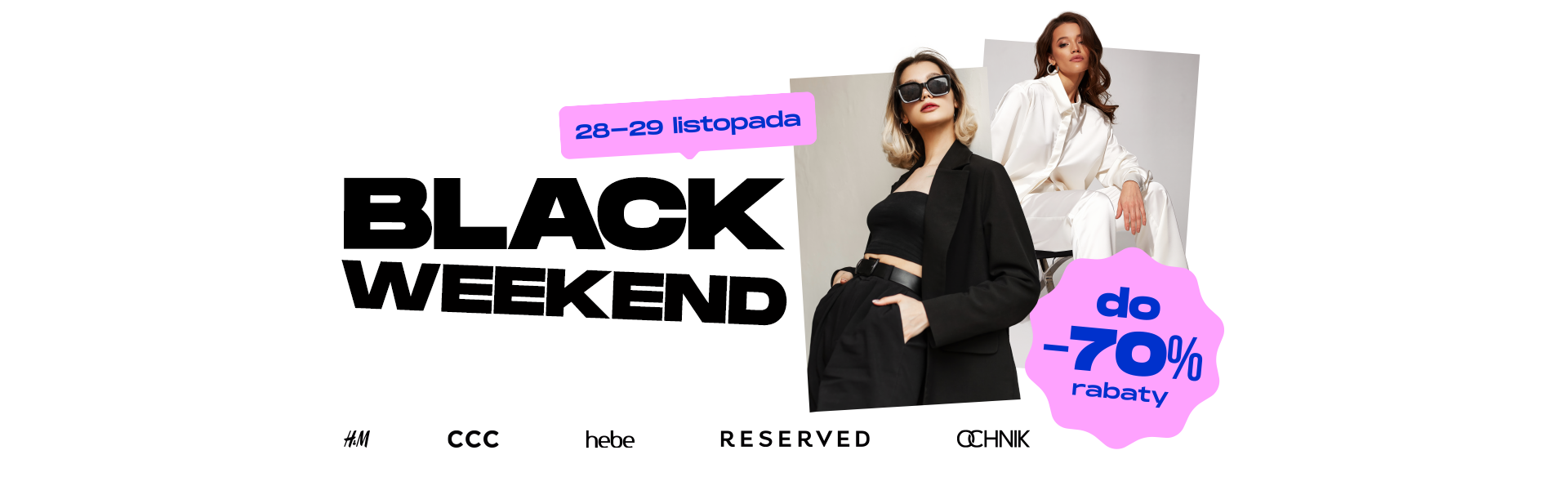 Już w dniach 28-29 listopada odwiedź nasze centrum, skorzystaj z mega przecen i super rabatów! Szaleństwo zakupów w sklepach już trwa! Ekskluzywne marki, najmodniejsza odzież, stylowe obuwie, olśniewająca biżuteria, luksusowa bielizna i oryginalne upominki – wszystko w jednym miejscu, w cenach, które zaskoczą nawet najbardziej wymagających! A to nie wszystko – punkty usługowe i restauracje również przygotowały specjalne oferty. Nie planuj nic na ten dzień oprócz udanych zakupów! Łap okazje i kup świąteczne prezenty już dziś.