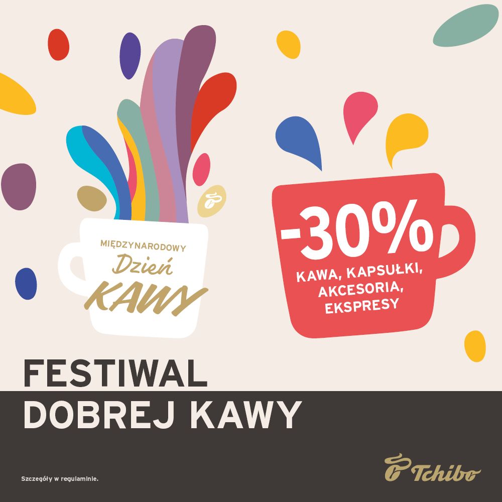 International Coffee Week w Tchibo! ☕ W dniach 29.09-13.10 wszystkie kawy, kapsułki, ekspresy i akcesoria kawowe kupisz o 30% taniej!😍 Skorzystaj z wyjątkowej okazji i uzupełnij zapasy lub wypróbuj nowości🥰❤
