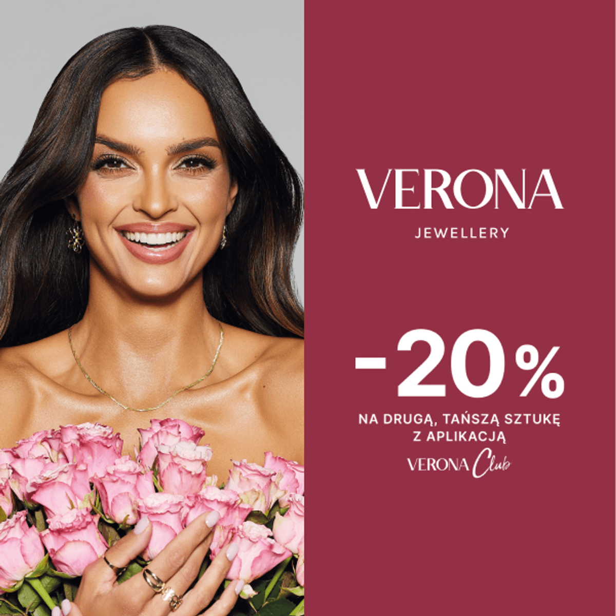 Zyskaj -20% na drugą, tańszą sztukę biżuterii z aplikacją Verona Club